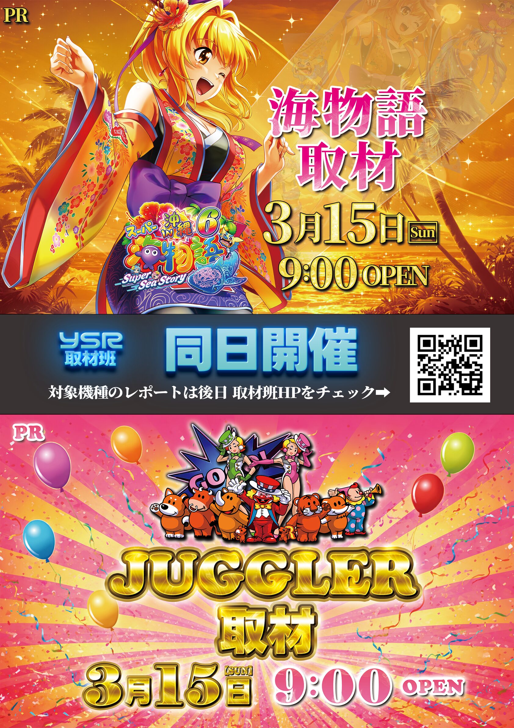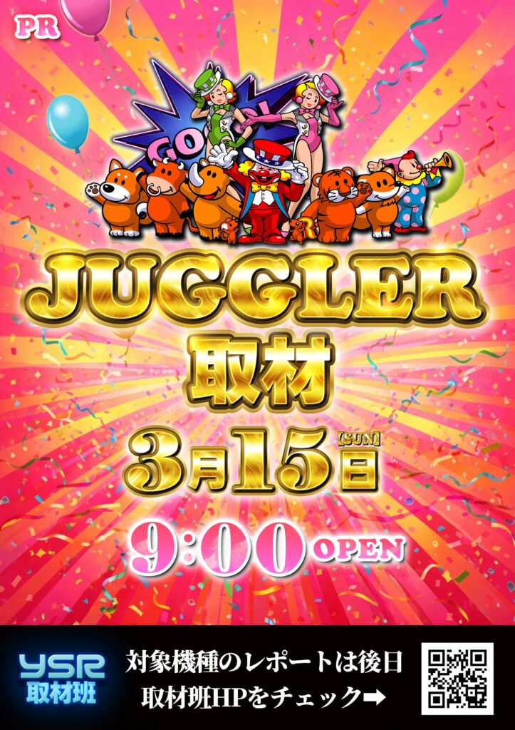 3/15(日)ロイヤル沼ノ端店(海物語取材、ジャグラー取材 )告知 ロイヤル沼ノ端店 2026.03.11 海物語取材(スーパー海物語IN沖縄6)とは? ホールのスーパー海物語IN沖縄6の様子をYSR取材班が徹底レポート!! ※取材結果は、後日レポート形式でSNSとHPにて投稿させて頂きます。 ジャグラー取材とは? ホールのジャグラーの様子をYSR取材班が徹底レポート!! 「GOGOランプの光が今日もあなたを魅了する」 ※取材結果は、後日レポート形式でSNSとHPにて投稿させて頂きます。 前回の取材の様子はこちらをチェック↓↓ 2/15(日)ロイヤル沼ノ端店(エヴァ取材、全速取材、赫眼取材)レポートロイヤル沼ノ端店レポート店内状況2/15(日)物価高に嬉しい、「トイレットペーパー販売会」と「エヴァ取材」「全速取材」「赫眼取材」と、様々なユーザーに向けて仕掛けを行っていた。店内は高稼働で、熱気があり、日頃から様々な取り組みを行っている「...