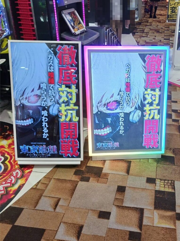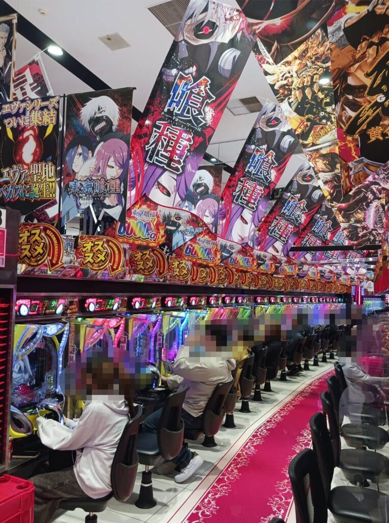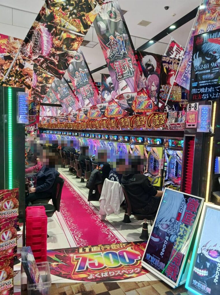 「L東京喰種」の島も高稼働の様子が確認できる。特筆すべきは、同じお客様がしっかりと粘って遊技をしている様子が目立っていた。