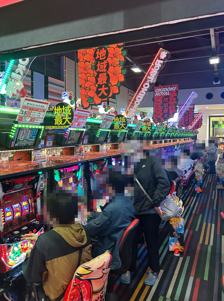 この大量設置の中でも、およそ半分くらいの台から+差枚が飛び出している。平均ゲーム数を見ても3000G超えの回転数となっており、粘っているお客様の姿からも状況は良かったと考えられる。残念ながら埋もれてしまった台も多かったのではないだろうか。