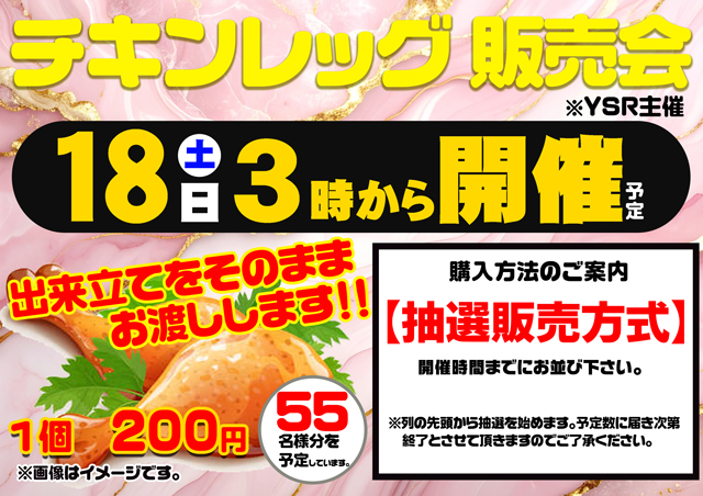 4/18(土)ロイヤル静内店(チキンレッグ販売会)