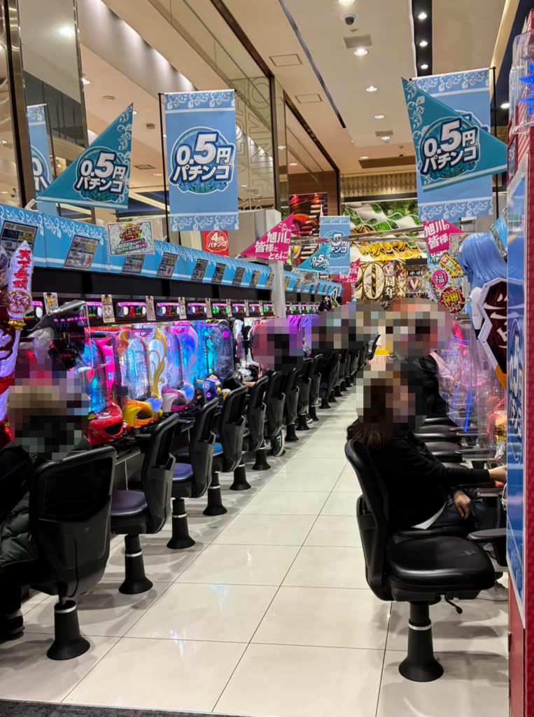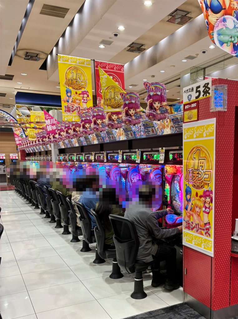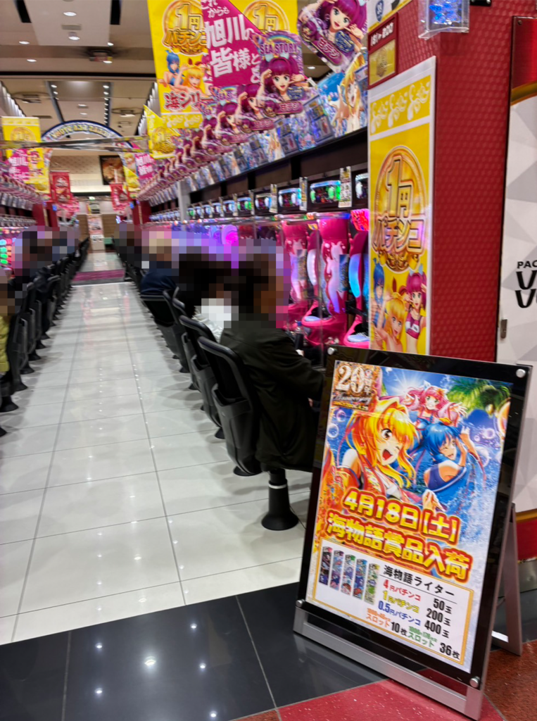 メイン機を中心としてまずまずの稼働。普段から店舗に足を運ぶ、自常連客の姿も多く見られた。低貸コーナーも人気で、たくさんのお客様が遊技している様子も確認できる。