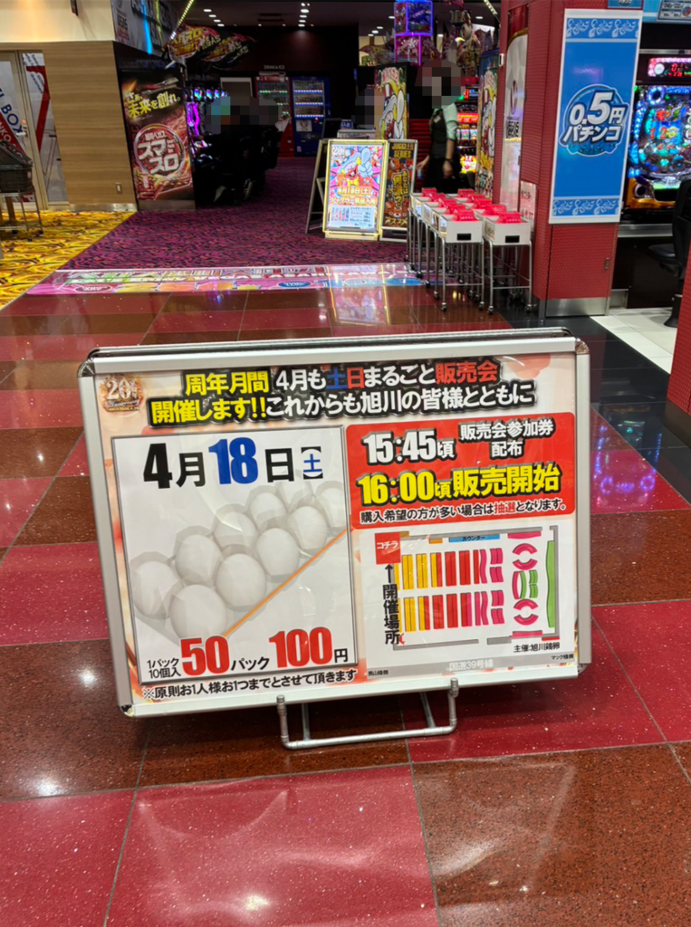 4/18(土)ベガスベガス旭川店のオリジナル取材となる「SATURDAY,VEGAS,REPORT」が開催された。当日、店内はなかなかの盛り上がりを見せており、店内をチェックしていると「キッチンカーの出店」、価格上昇の中でも嬉しい「たまご販売会」、「ジャグラー賞品の入荷」等、様々なニーズに答えられる魅力が盛りだくさんの1日であった。