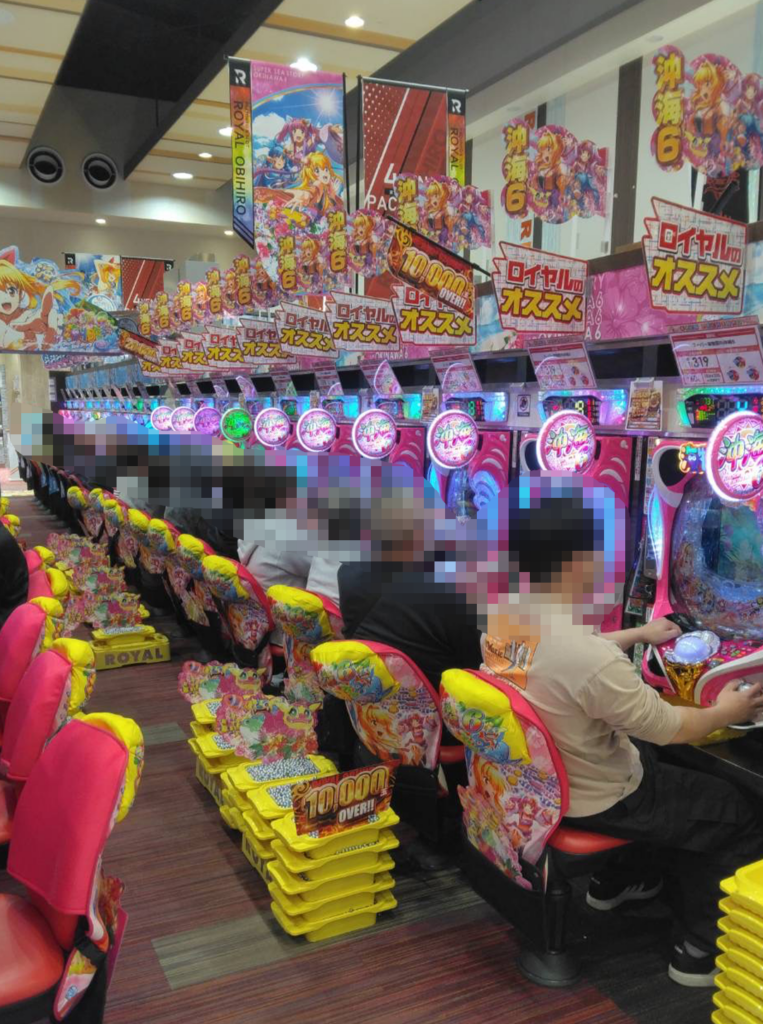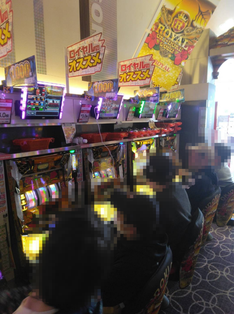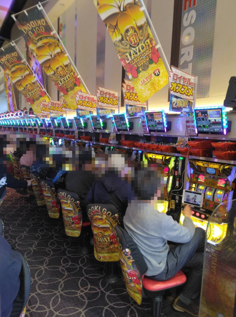店内はスロットコーナーを中心に高稼働で、箱積みも散見される状況。パチンココーナーにも常連客と見られるお客様を中心ににぎわっている様子が確認できる。