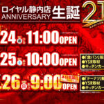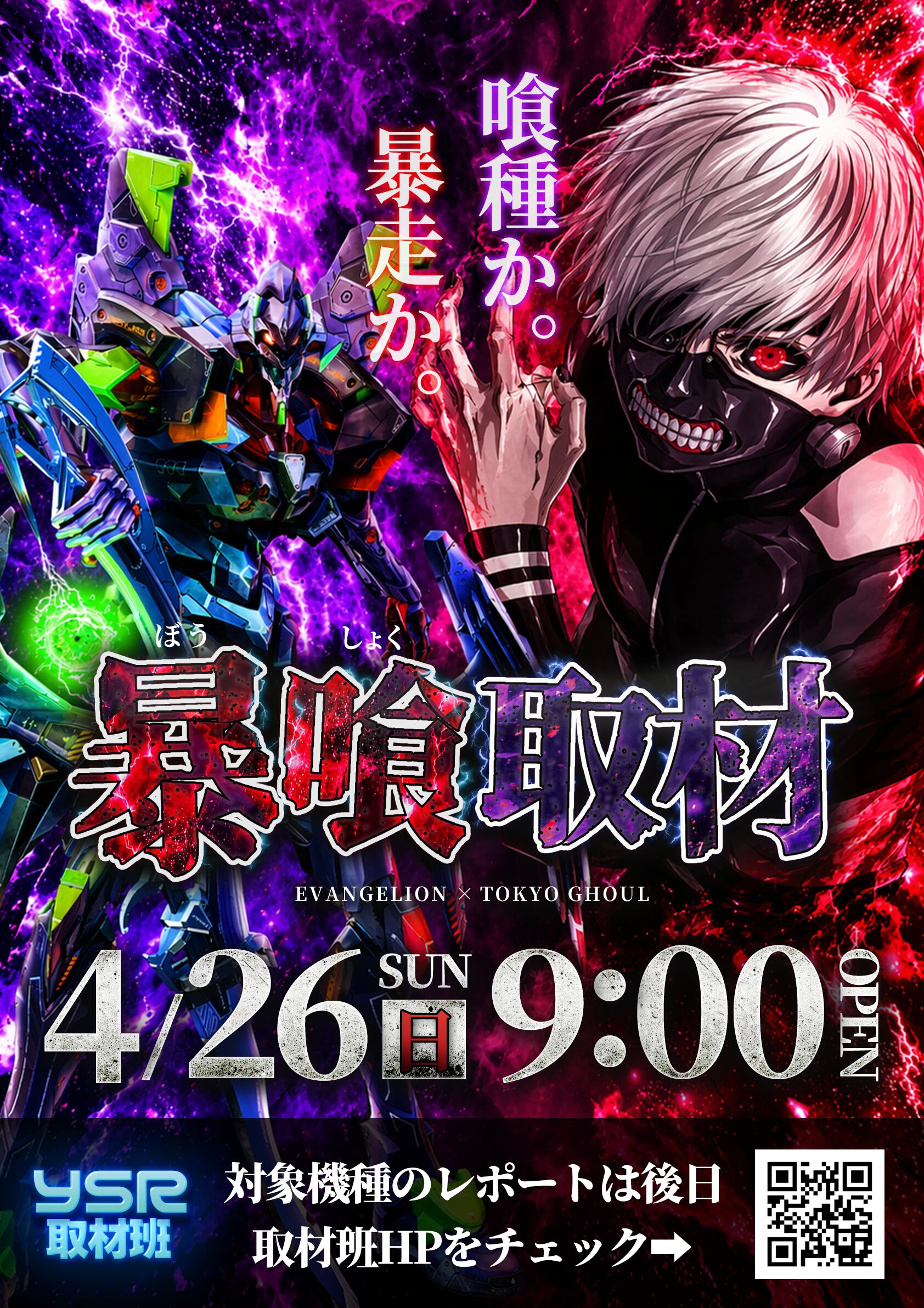 4/26(日)ロイヤル帯広店(暴喰取材) ロイヤル帯広店 2026.04.25 暴喰取材とは? ホールのエヴァシリーズと東京喰種シリーズを対象としてYSR取材班が徹底レポート!! ※取材結果は、後日レポート形式でSNSとHPにて投稿させて頂きます。 前回開催の取材はこちら↓↓ 4/19(日)ロイヤル帯広店(ドキドキ海取材)レポートロイヤル帯広店レポート店内状況4/19(日)今回は「ロイヤル帯広店ファン」の中で恒例となってきている「ドキドキ海取材」が開催された。毎回、好結果が飛び出しているだけに注目も集まる中で、店舗からの熱気も凄まじいものを感じた。店内はスロットコー... PR